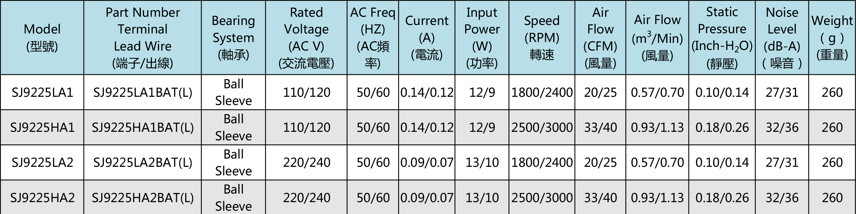 Taiwan San Ju SJ9225HA2-AC axial fan